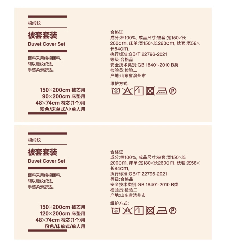 【限定】棉缎纹被套套装 床上用品 三件套/四件套